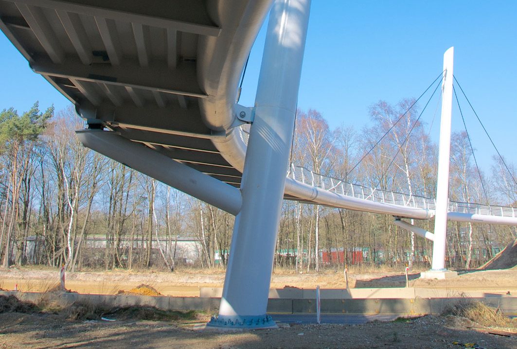 Ce pont pour vélos fait partie du projet pour rendre plus sûr le carrefour donnant sur la gare d’As. Il comporte deux parties : un pont suspendu en courbe sur 95 m et une pente d’approche d’environ 60 m qui repose sur 4 supports. Le pont suspendu est constitué de deux pylônes en acier de 20 m de haut. La poutre principale est constituée d’un tube coudé en acier d’une longueur de 95 m (diamètre de 864 mm) avec des supports transversaux en porte-à-faux.