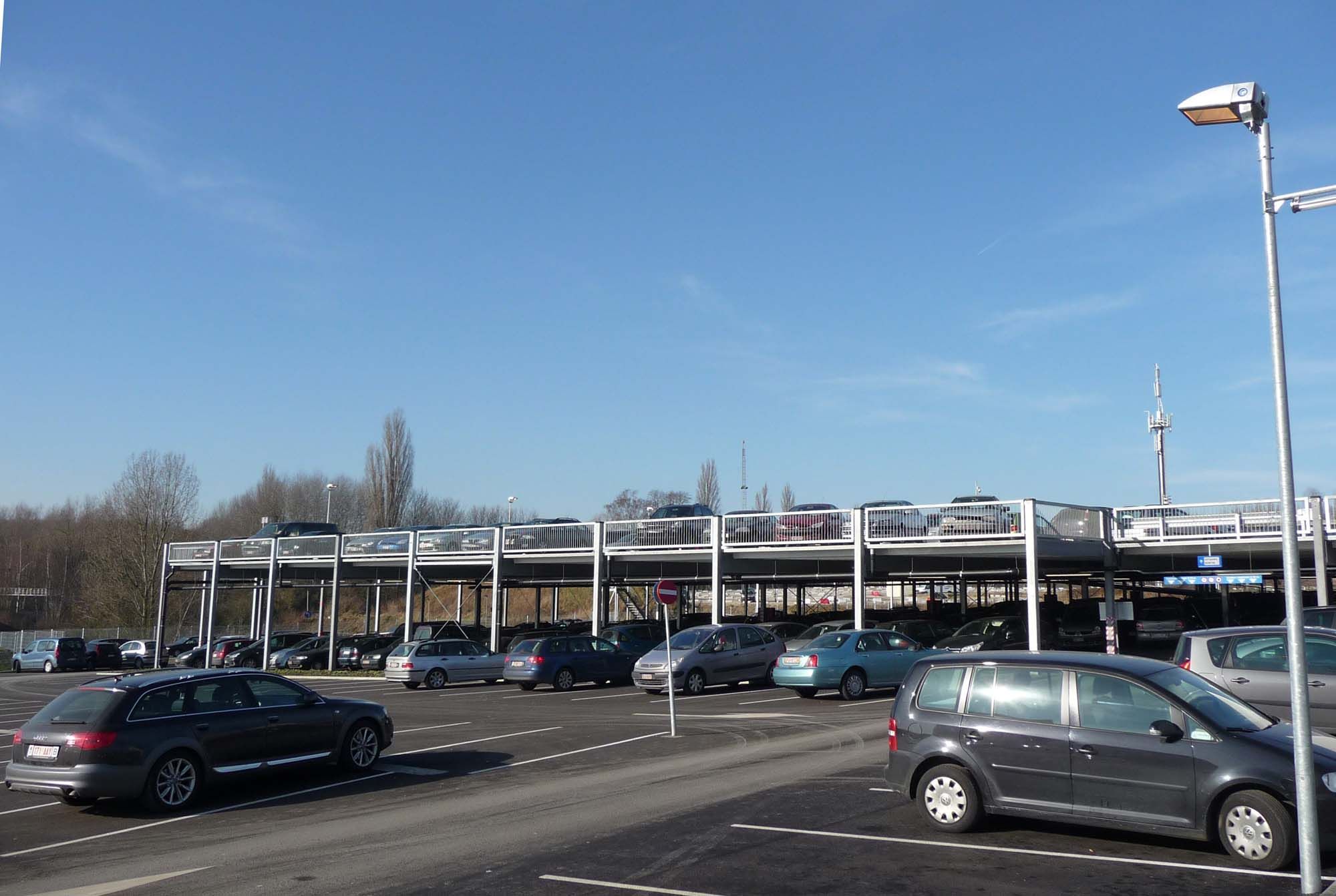 Pour faire face à ce problème, il a été décidé de construire au-dessus du parking existant, un nouveau bâtiment d’une capacité de 850 places. Le bâtiment est réalisé à partir d‘une ossature en acier galvanisé à chaud et d’un plancher collaborant. Le choix de ces matériaux a permis d’ériger une structure légère et mince en réduisant la durée du montage.